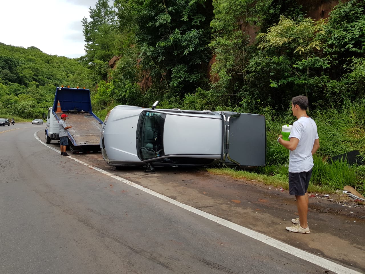 No primeiro acidente, conforme informações do Comando Rodoviário da Brigada Militar, o motorista do Onix, de 20 anos, estava sozinho quando capotou por volta das 11h30. Ele seguia no sentido Venâncio Aires/Santa Cruz do Sul quando perdeu o controle do veículo, invadiu a pista contrária e foi parar capotado no outro lado da rodovia. Chovia no momento do acidente. O motorista, que não teve o nome divulgado, ia para o trabalho e não se feriu.