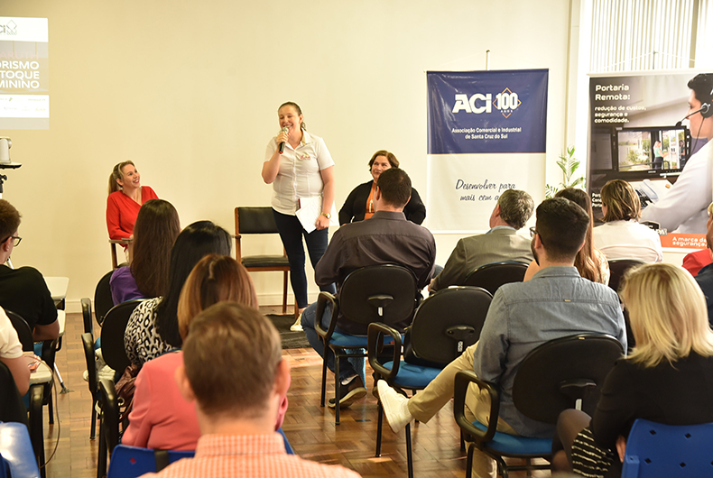 A Associação Comercial e Industrial (ACI) de Santa Cruz do Sul promoveu uma edição do Café Empresarial nessa terça-feira, 22, em parceria com o Núcleo de Mulheres Empreendedoras da ACI, com a presença da empreendedora Elisa Bertram, sócia-proprietária da Lisaruth Delícias Caseiras. Foi um bate-papo com o objetivo de destacar a trajetória de sucesso com um toque feminino da empresa, localizada na RSC-287, em Linha Pinheiral. A pequena padaria familiar se transformou em uma estrutura de 1,3 mil metros quadrados, com 75 colaboradores e um mix de 320 produtos. Elisa é formada em Gastronomia pela Unisc e responsável pela produção na Lisaruth.