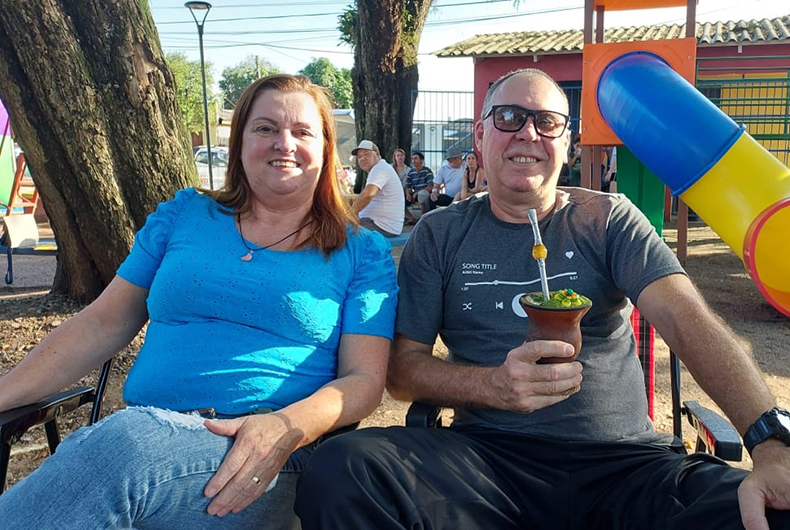 Prestigiando o Praça da Cidadania, o casal de aposentados Elizane Lemes Silveira e Claudio Dummer levou o chimarrão para acompanhar a programação. “Adoro isso aqui. A praça está bonita, nosso bairro é bom de se viver, e moramos na Rua Farroupilha, onde já foi colocada a primeira camada de asfalto. Não temos do que reclamar”, relatou Elizane.