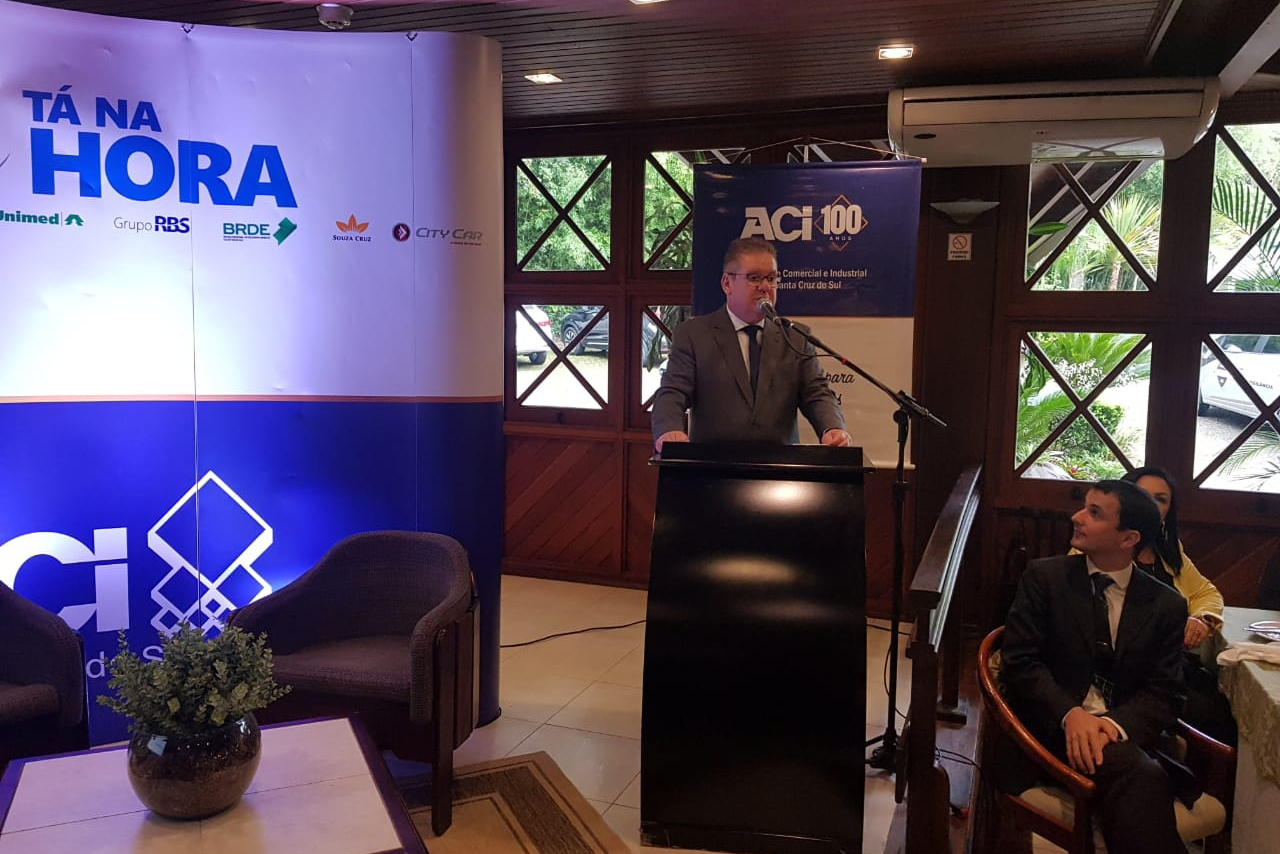 A reunião-almoço Tá na Hora, promovida pela Associação Comercial e Industrial (ACI) de Santa Cruz, recebeu o vice-governador do Estado, Ranolfo Vieira Júnior, nesta segunda-feira, 21. A atividade ocorreu no restaurante do Hotel Águas Claras com o tema “RS Seguro: Programa estruturante e transversal de Governo para a Segurança Pública”.