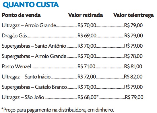 Há variações para cima e para baixo. O menor preço encontrado pela Gazeta do Sul para o gás retirado na distribuidora é de R$ 68,00, pago em dinheiro. Já o botijão com telentrega varia entre R$ 78,00 e R$ 82,00.