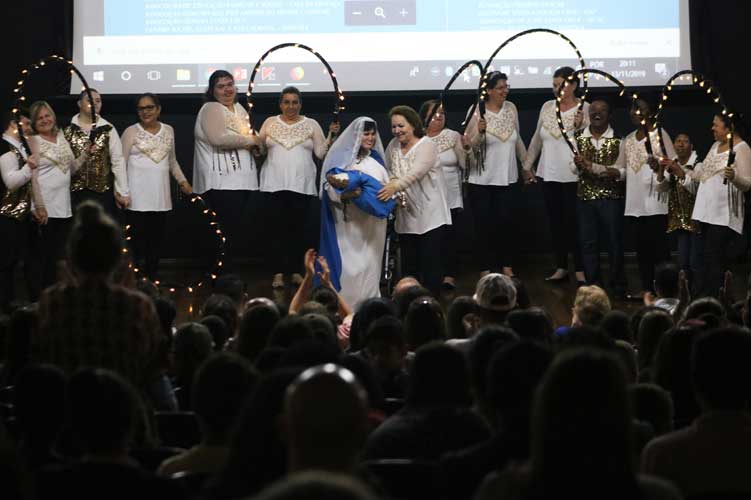 Ao som de Ave Maria, o grupo Mães e Filhos da Associação de Pais e Amigos dos Excepcionais (Apae) emocionou o público. Durante a performance, em meio a luzes e coreografias, eles deram brilho à noite. Aplaudidos de pé, demonstraram um pouco do trabalho realizado ao longo do ano, assim como a orquestra e grupo de dança do Centro Social Marista Boa Esperança, que fez a abertura da programação.