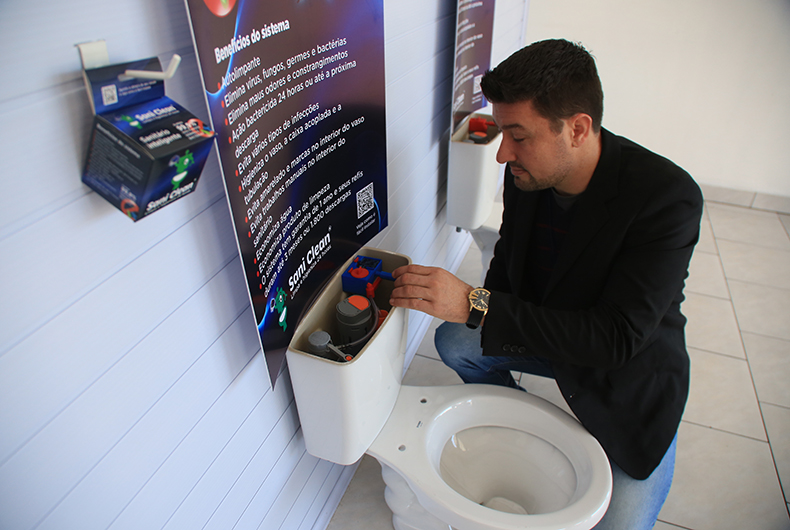 A persistência de um morador de Venâncio Aires resultou num invento que pode facilitar a limpeza e a higiene dos banheiros. Recentemente, Lucas Ronieri Helfer Bernardes, de 35 anos, patenteou um sistema de limpeza das caixas acopladas a sanitários que promete deixar o vaso limpo e livre de bactérias durante as 24 horas do dia. O equipamento consiste em uma caixa de plástico que pode ser facilmente instalada em quase todas as caixas de descarga de vasos sanitários. Segundo Lucas, apenas nos modelos muito antigos é preciso fazer uma pequena adaptação ao seu sistema de limpeza, batizado de Sani Clean.