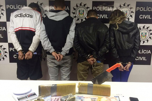 A ação foi realizada por policiais civis da 1ª Delegação de Investigação do Narcotráfico (DIN) e Departamento Estadual de Investigações do Narcotráfico (Denarc), coordenados pelo Delegado Guilherme Calderipe. Segundo informações da Polícia Civil, três dos presos estavam em um Honda Civic e fariam uma entrega de maconha, quando foram abordados. O outro detido seria o comprador do entropecente. Foram apreendidos mais de dois quilos de maconha, uma balança de precisão e acessórios para preparo da droga.