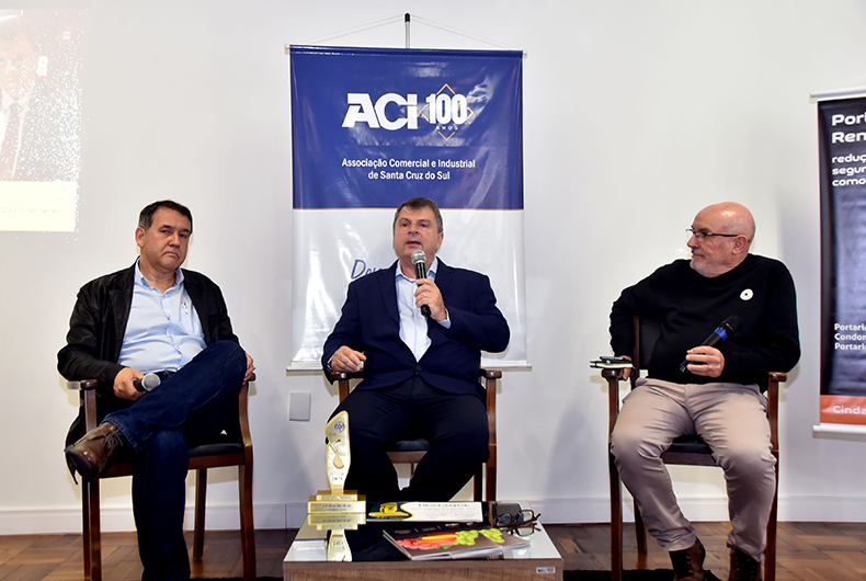 Sehnem (centro) ao lado dos mediadores Dornelles (e) e Vogt: trajetória inspiradora