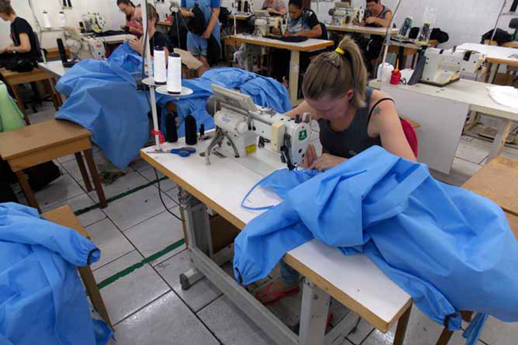 As empresas de costura de Sinimbu – E. Bender e Cia Ltda, Martina Schuch Thomé e Cia Ltda e Visales Indústria e Comércio de Confecções Ltda – também auxiliam no combate ao coronavírus. Os empreendimentos produzem aventais e máscaras cirúrgicas para as instituições de saúde (foto). Conforme comunicado da Confecções Di Selen, responsável pela produção das empresas locais, a resultado do esforço coletivo será 100% doado e entregue sem custos para hospitais e municípios que necessitarem destes insumos. A iniciativa garante também a manutenção dos empregos e geração de renda.