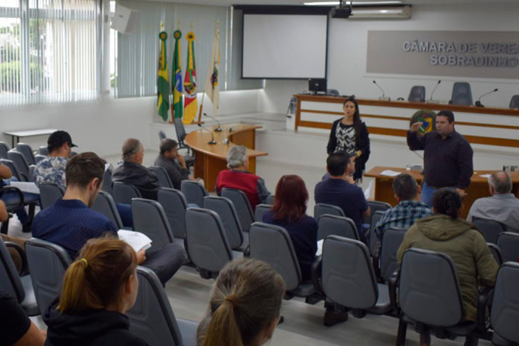 A Câmara de Vereadores de Sobradinho promoveu na tarde dessa segunda-feira, 6, uma capacitação para os proprietários dos restaurantes, bares e lanchonetes. O objetivo foi orientar sobre as medidas que devem ser adotas pelos estabelecimentos frente à pandemia do novo coronavírus. Na ocasião estavam presentes o vice-prefeito, Armando Mayerhofer, a procuradora jurídica do município, Greta D’Olanda, e os secretários de Finanças e Planejamento, Felipe Secretti, e de Administração, Diego Batista da Silva.