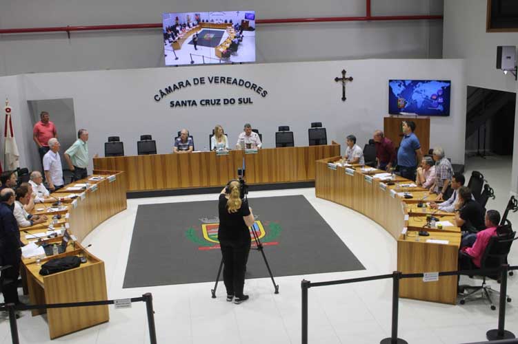 Após três horas e meia de debates em uma sessão extraordinária que serviu de termômetro para a eleição da presidência na próxima terça-feira e antecipou o clima eleitoral do ano que vem, os vereadores de Santa Cruz aprovaram o projeto que autoriza a Prefeitura a contratar até 59,8 milhões em financiamento com a Caixa Econômica Federal para um pacote de obras. A sessão foi marcada por provocações e muitas críticas à pressa do governo Telmo Kirst (PSD) em ver aprovado o projeto – que havia chegado à Câmara menos de 24 horas antes.
