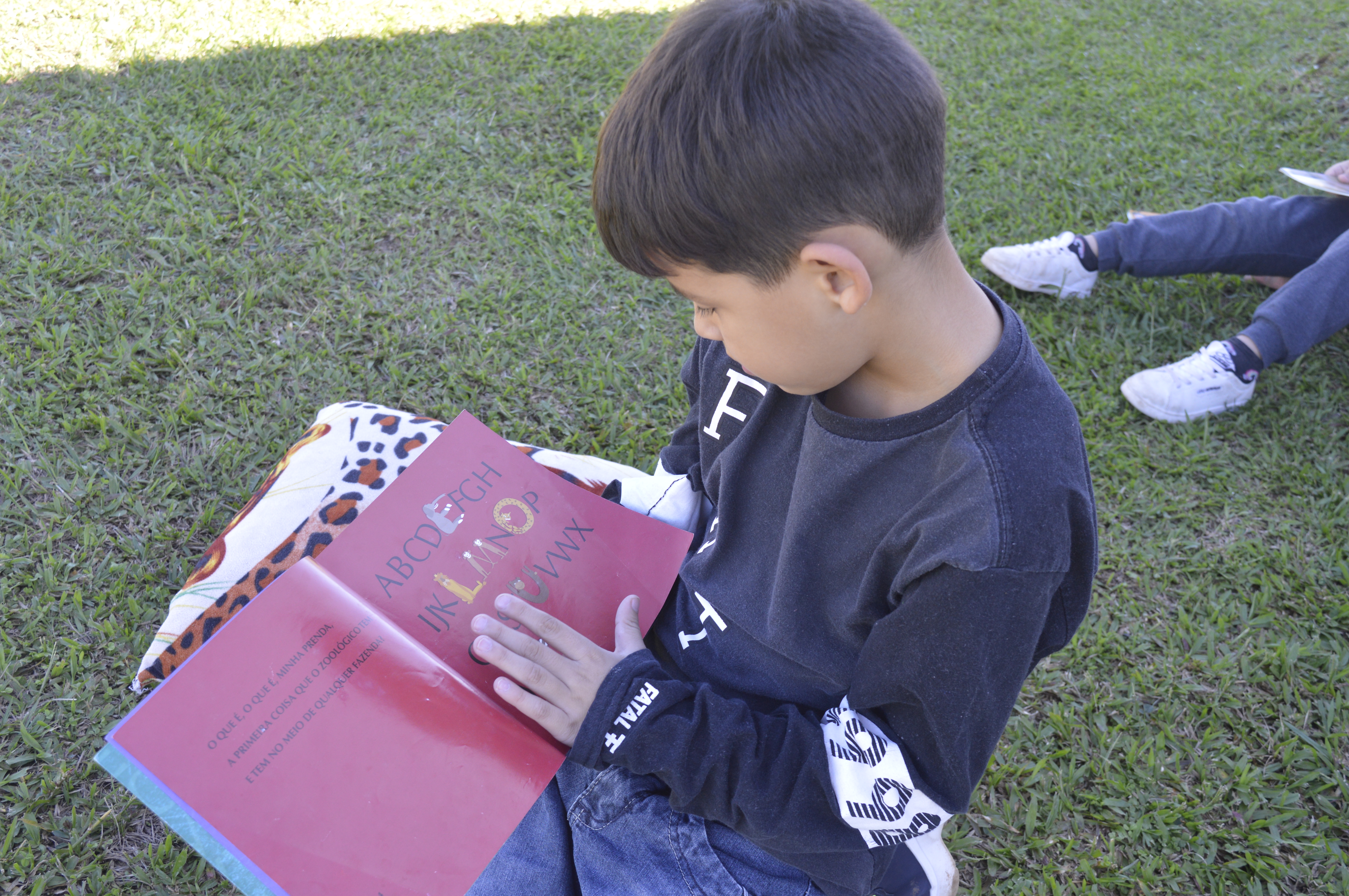 Seja na biblioteca, na sala de aula ou no pátio da escola, sempre há lugar para abrir um livro. Nessa semana, assim como ao longo do ano letivo, ele faz parte das atividades. Com a turma do 1º ano da Escola Municipal de Educação Básica Espírito Santo, de Sobradinho, não é diferente. Orientados pela professora Ana Luiza, os pequenos também participam de ‘paradas literárias’, minutos dedicados à leitura e à construção do imaginário, do despertar a curiosidade, de partilhar o entendimento e ampliar o vocabulário. E tudo tem um ‘jeitinho’ de aconchego para que a viagem não seja cansativa e a experiência seja a melhor possível. “A gente organiza o espaço, então eles pegam os livros, folheiam, trocam com colegas. As imagens neste momento é o que desperta uma curiosidade deles criarem uma história, para que, a partir disso, queiram achar palavrinhas para compor essa história. Então, quando os alunos começam a entender que as letrinhas se ligam e transformam-se em palavras, eles começam a ter vontade de ler livros que tenham mais frases, mais texto”, comenta a pedagoga.