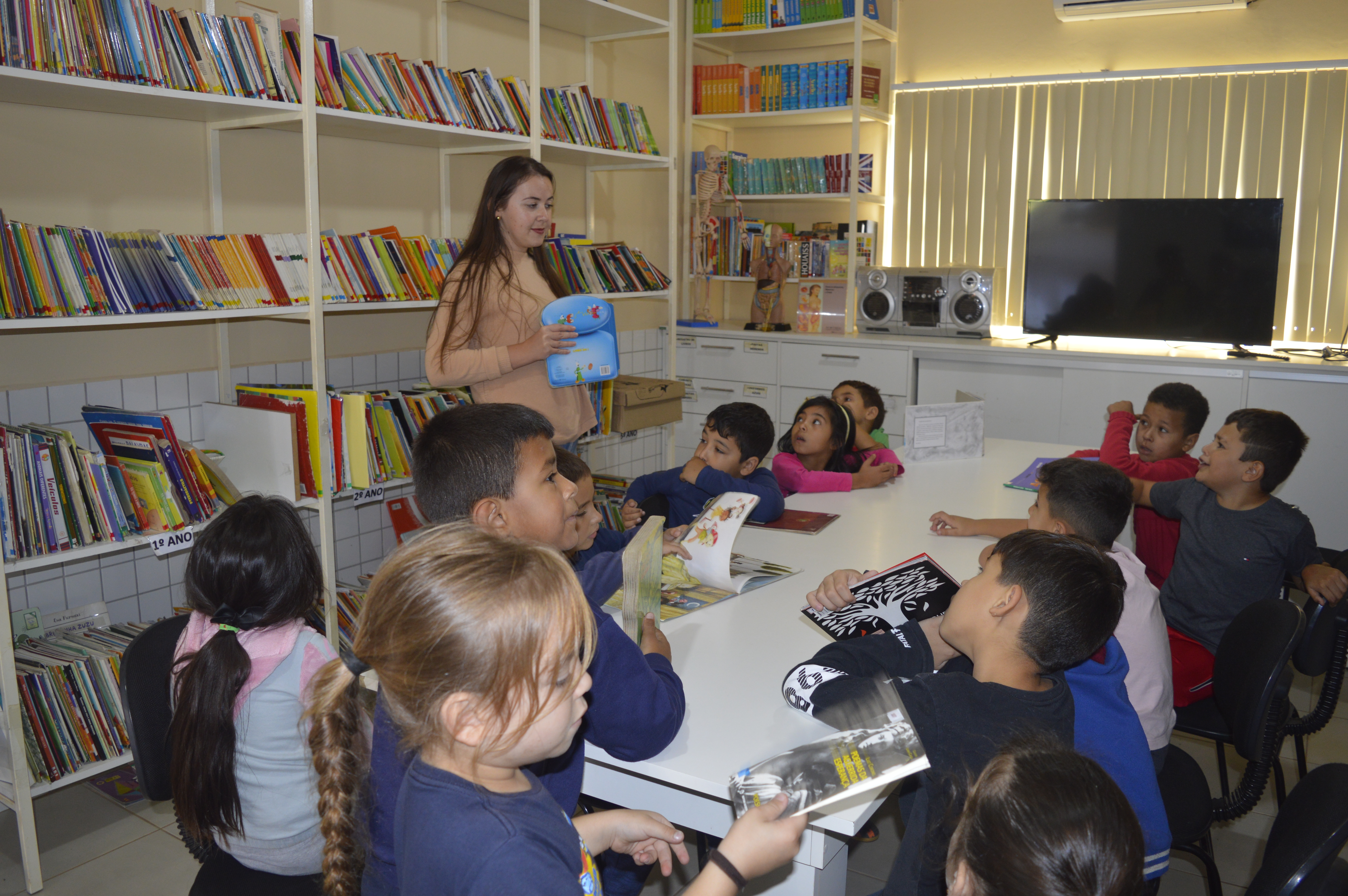 Para a professora, o caminho é uma construção que se inicia muito cedo, passa pela educação infantil, chega ao 1º ano e segue adiante. “Desde o fazer a ligação das letrinhas, das vogais e consoantes, é uma soma de aprendizado. Nesse início, a leitura que eles têm dos livros é de palavras mais simples, é mais visual, dos elementos, e é isso que funciona para que aprendam, também ouvindo e contando histórias”, ressalta.