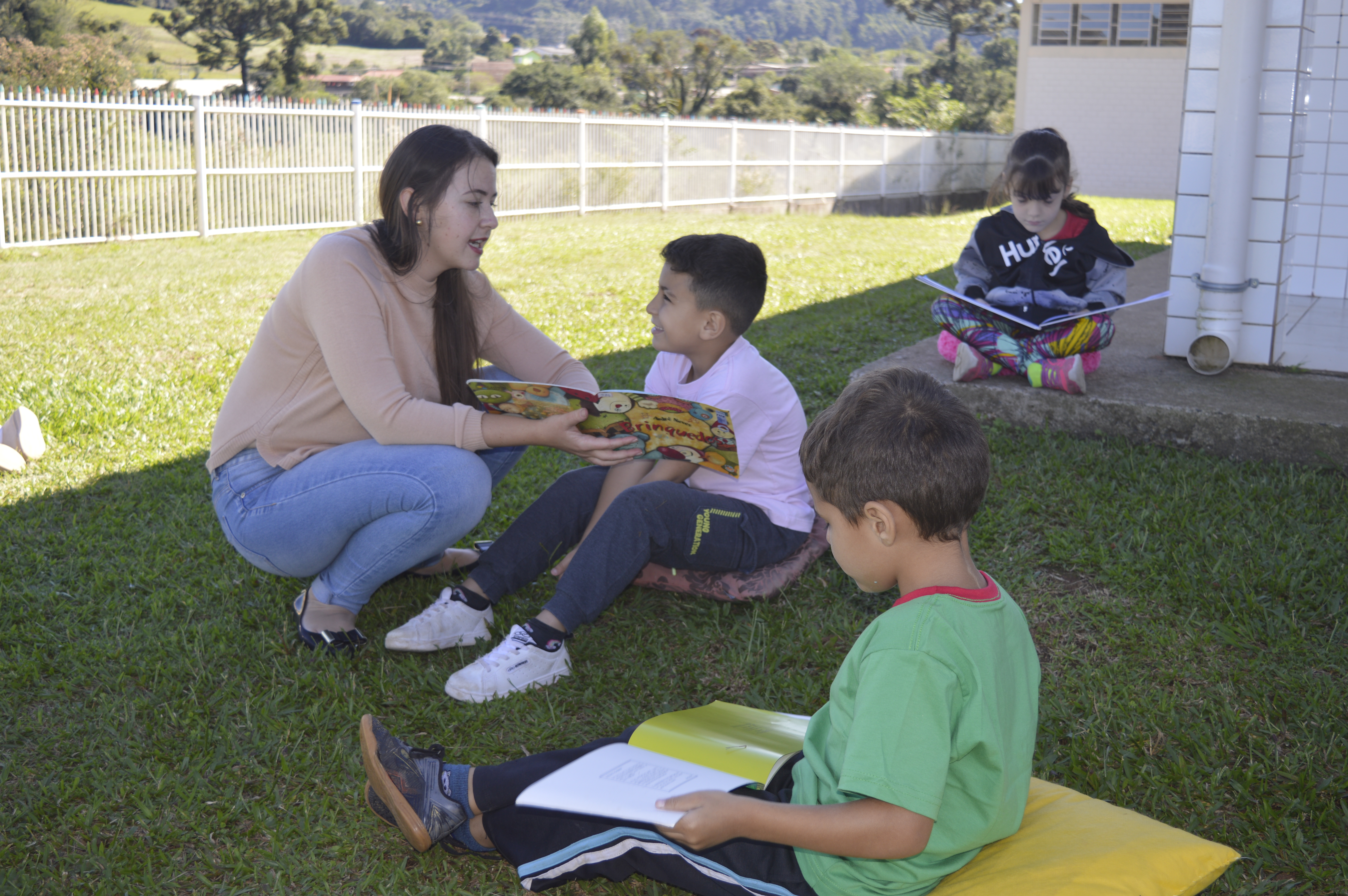 Acompanhando uma dessas paradas literárias na EMEB Espírito Santo, todos com livros em mãos, já formando palavras ou interpretando as imagens, ouvindo a professora ou escutando atentos às histórias ‘inventadas’ pelos colegas, se reforça a importância do livro, da leitura e do momento de atenção para o aprendizado das crianças, e que este não deve ficar apenas entre as paredes da escola.