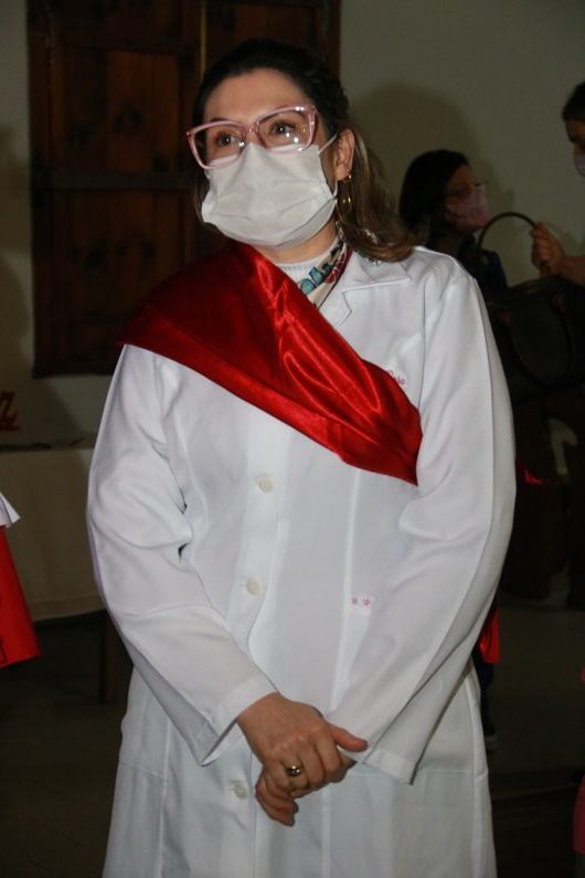 Durante o encontro, a enfermeira e integrante do grupo, Deise Rosa da Silveira, que atuou na ala Covid do Hospital Santa Cruz, foi homenageada. “Pelo trabalho incansável no hospital, inclusive atendendo Caetanas nossas que se foram. Hoje a Deise nos representa demais”, salientou Zoraia. Como lembrança, ela recebeu o lenço vermelho que representa Anita Garibaldi. “Vou fazer por merecer a confiança”, agradeceu a enfermeira.