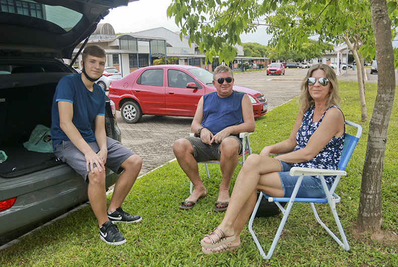 Mais tranquilos estavam os integrantes da família Tesche, de Candelária. Os pais Gerson e Veridiana levaram Henrique Otávio para fazer as provas, como forma de conhecer o processo, já que tem 16 anos e está no segundo do Ensino Médio. Enquanto o estudante testava os conhecimentos nas exatas, eles ficaram no pátio da universidade fazendo, entre outras atividades para passar o tempo, as cruzadas publicadas na Gazeta do Sul.