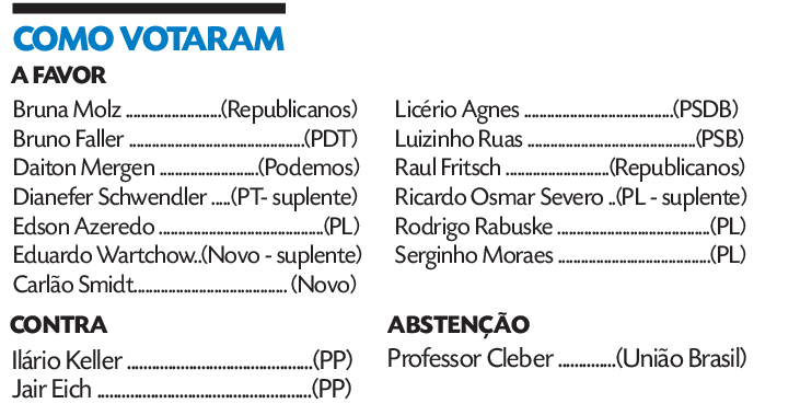 Por serem os proponentes, Nicole Weber (Podemos) e Leonel Garibaldi (Novo) não votaram e foram substituídos pelos suplentes Ricardo Osmar Severo e Eduardo Wartchow, respectivamente. Os nomes deles também não estiveram na urna usada para sortear os membros da CPP, além de Gerson Trevisan, por ser o presidente, e do próprio Henrique Hermany.