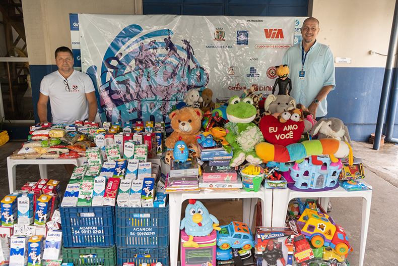 A manhã dessa terça-feira, 7, foi de entrega dos alimentos e brinquedos arrecadados durante as etapas do Estação Verão de 2023. Cerca de 300 litros de leite foram doados à Associação de Auxílio aos Necessitados (Asan) e 300 brinquedos para a Secretaria Municipal de Desenvolvimento Social. Conforme o gestor de Eventos Esportivos da Gazeta, Alexandre Cruxen, que realizou a entrega dos donativos, a sensação é de dever cumprido. “Atingimos o objetivo social, que é uma das metas que temos. Priorizamos a atividade física, desenvolvimento, saúde mental, mas também a realização do viés solidário”, afirmou.