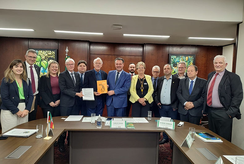 O dirigente entregou ao ministro Carlos Fávaro o relatório Tabaco e ESG 2023, com as principais ações e números do setor. O presidente da Associação dos Fumicultores do Brasil (Afubra), Benício Werner, também entregou documento ao ministro com dados sobre a cadeia produtiva.