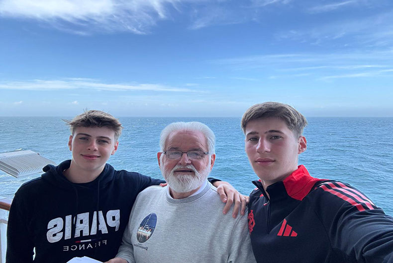 O médico e jornalista Ivan Seibel, quando já viajava em direção a Ushuaia, na companhia dos netos Tiago (esq.) e Henrique Kämpf
