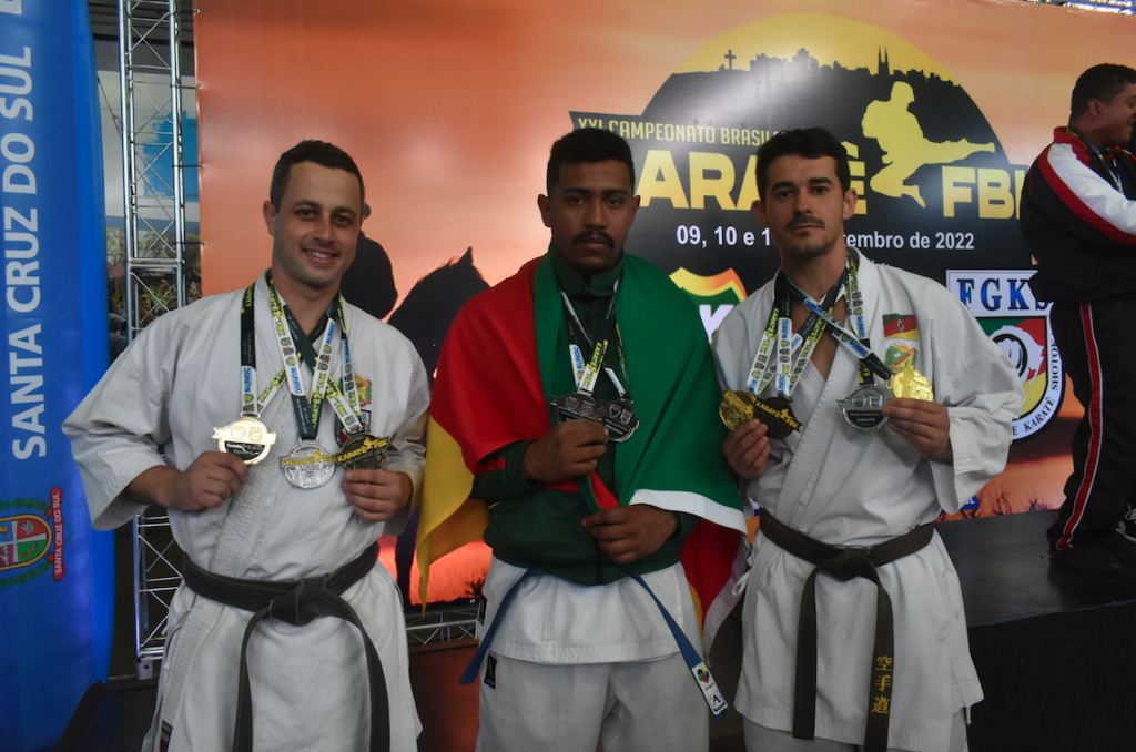 Diversos estados estiveram representados no Campeonato Brasileiro de Karatê, em Santa Cruz do Sul, mas ninguém veio de tão longe quanto os atletas do Rio Grande do Norte. Quatro deles vieram de carro, percorrendo 4,3 mil quilômetros no trajeto entre Natal e Rio Grande do Sul. O presidente da Federação Potiguar de Karatê, Júlio César Lima Macedo, mostrou-se orgulhoso com as medalhas conquistadas. “Viemos em seis atletas, três campeões e um bronze. Ficamos muito satisfeitos. Com muita força de vontade dos atletas, representamos muito bem o Rio Grande do Norte”, ressaltou.