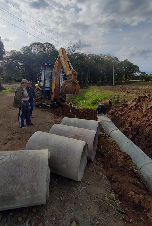 A via recebeu 16 cargas de rachão e outras nove de cascalho para a normalização. Também houve a substituição de 25 canos na travessia em frente ao Bolão Gaúcho. Ainda serão necessários pelo menos três dias de trabalho para concluir o serviço de patrolamento da estrada. Ao todo, nove servidores estão atuando nesta atividade, com o uso de caminhões, retroescavadeira, patrola e rolo compactador.