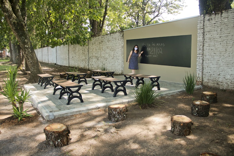 A ideia dos espaços ao ar livre surgiu ainda em 2020, por conta da pandemia, que causou limitação de alunos por sala e sistema de revezamento presencial. “Pensamos em criar algo diferenciado, para facilitar que o aluno esteja no ambiente externo. Acreditamos que a saída da rotina de uma sala tradicional é vista com bons olhos pelos alunos. A aula se torna mais aproveitada quando o professor usa metodologias diferenciadas para trazer o assunto”, explica Janaína.
