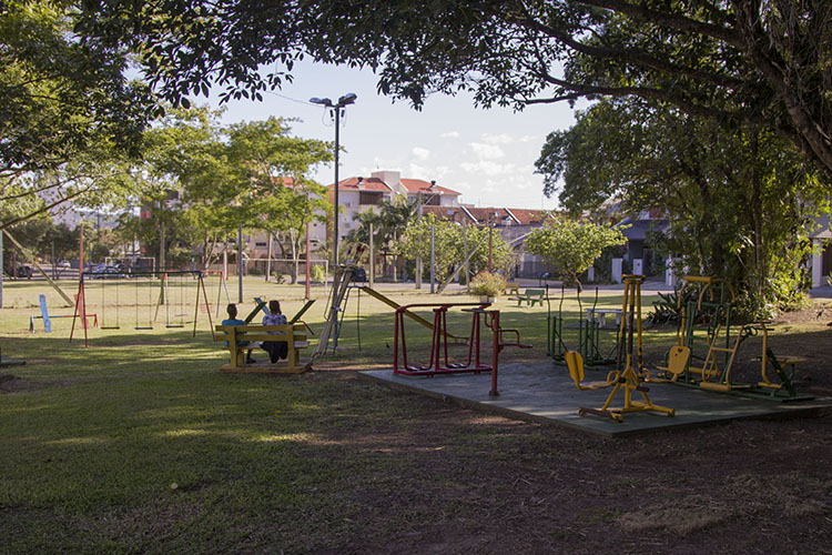 Quem também frequenta muito o espaço é a cadela Pantera, do empresário Gustavo Hoff. A dupla está sempre por perto, até porque o empresário mantém, no terreno ao lado da praça, um furgão de hambúrguer. “Eu sou voluntário como os outros. Ajudo na manutenção da limpeza e conservação da área. Nosso último experimento foi a instalação de pontos de coleta de bitucas de cigarro.” E ele mostra, orgulhoso, os dispositivos colocados junto a algumas árvores. “Estar aqui é melhor do que estar em casa, este aqui é o nosso ar-condicionado”, classifica o empresário.