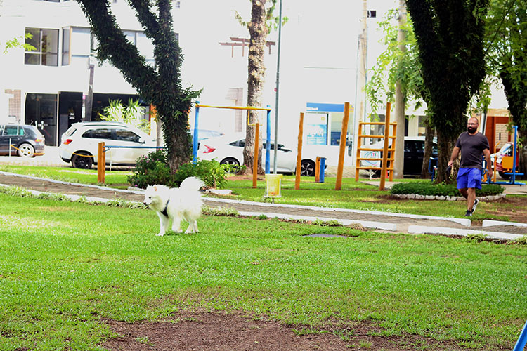 O aposentado André Sallinas e seu cão Tom, um Samoieda branco, têm na praça o ponto ideal para os seus passeios, e não apenas nos finais de semana. A dupla sai todos os dias do Bairro Universitário para aproveitar a natureza e a estrutura bem cuidadas da Ernesto Frederico Söhnle. “Tom gosta mais deste local. Eu já morava aqui no Bairro Santo Inácio, por isso ele se acostumou com esta praça.”