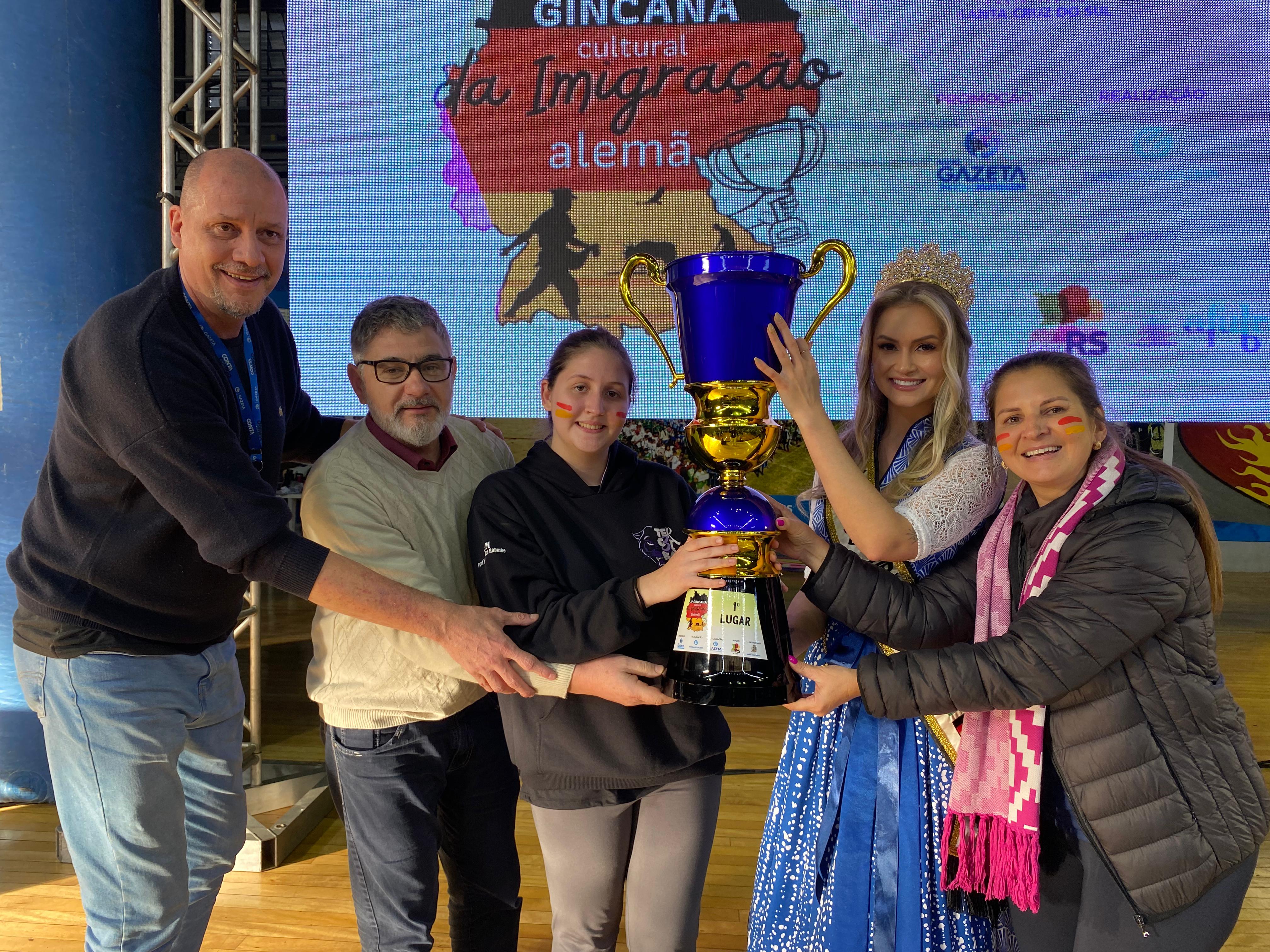 A Escola Affonso Rabuske foi a grande vencedora da Segunda Gincana da Imigração Alemã. O evento aconteceu das 8h15 até 16h30 desta quarta-feira, 17, no Ginásio Poliesportivo Arnão. Com realização da Fundação Gazeta – Jornalista Francisco José Frantz, o momento reuniu estudantes de sete escolas de Santa Cruz do Sul para realizar diferentes atividades, demonstrando conhecimentos sobre a cultura alemã.