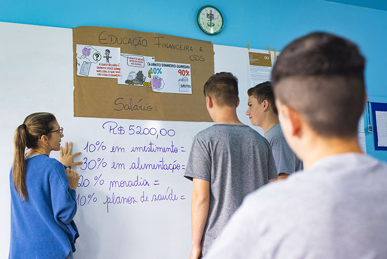É por meio da iniciativa da professora de Matemática Carla Jandrey que estudantes do 8º e do 9º ano aprendem a ter uma poupança, controlar os gastos essenciais dentro de casa e ter rendimentos. “Esse tipo de educação é muito importante para a vida, pois é uma forma de os alunos terem objetivos com a profissão que eles vão escolher para o futuro.”