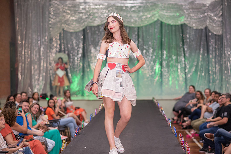 Segundo o professor de Artes e coordenador da atividade, Antônio Petry, a ideia do projeto surgiu em 2022, enquanto ele assistia ao Fashion Week de Paris. “Me veio a ideia de desenvolver junto com os alunos uma Fashion Week, só que utilizando somente materiais recicláveis”, relembra. Na época, ele desenvolveu a atividade apenas com alunos do Ensino Médio, que confeccionaram em torno de 130 modelos utilizando garrafas pet, CDs, jornais, revistas, lacres de refrigerante e outros itens.