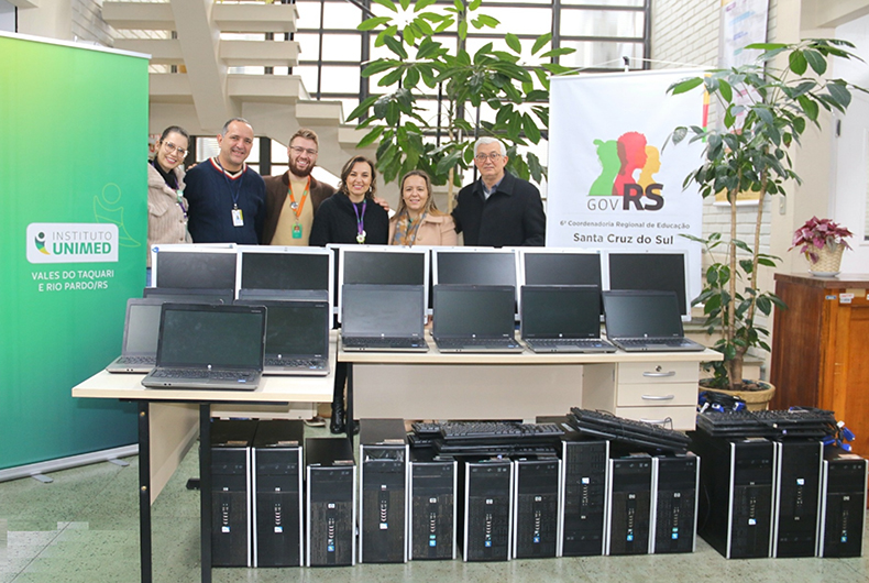 Alunos e professores de escolas públicas dos vales do Taquari e Rio Pardo passam a contar com mais um apoio tecnológico para aprender e ensinar. Em mais uma iniciativa do Dia de Cooperar da Unimed Vales do Taquari e Rio Pardo, 24 computadores formatados e prontos para uso foram doados e entregues para representantes da 6ª Coordenadoria Regional de Educação (CRE), em Santa Cruz nesta quarta-feira, 26.
