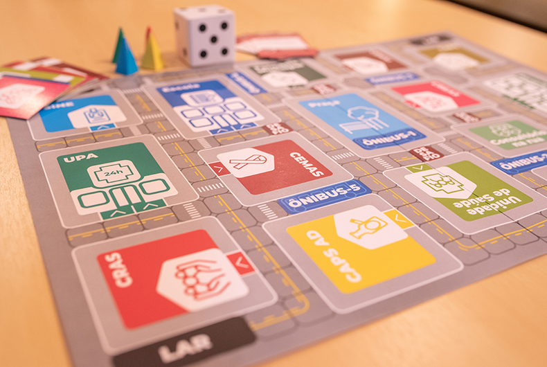 tabuleiro possui 12 situações em que os alunos percorrem um caminho e precisam adotar uma estratégia. Ele representa graficamente Santa Cruz do Sul, com diferentes serviços e dispositivos de cuidado intersetoriais. “Durante o jogo, eles precisam pensar sobre onde estão e aonde devem ir, qual a forma mais rápida de resolver o problema em questão. Em cada rodada, eles vão conhecendo quatro locais de saúde diferentes do município. O jogo gera um senso de competitividade e eles vão se empenhando em fazer as tarefas”, explica.