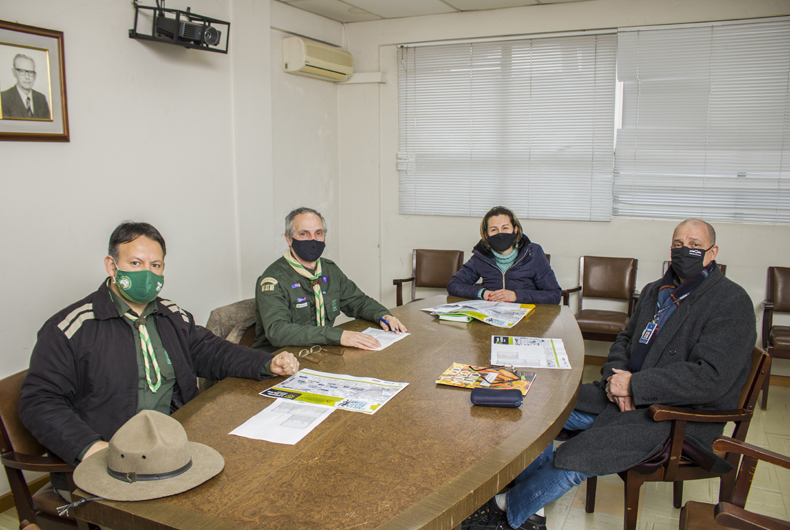 A organização da 14ª Rústica e 3ª Meia Maratona de Santa Cruz do Sul – representada pelo gestor de eventos esportivos da Gazeta Grupo de Comunicações, Alexandre Cruxen, e pela educadora física Catiana Martins – realizou uma reunião na tarde dessa quarta-feira, 28, com Fábio Roberto Azevedo e Andriano Felippe Alves, respectivamente, diretor-presidente e diretor de Métodos Educativos do Grupo Escoteiro Santa Cruz (Gesc). O encontro teve por objetivo tratar do suporte que o Gesc dará ao evento.