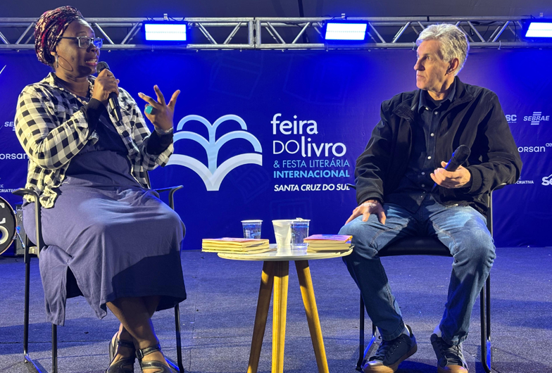 O palco principal da 35ª Feira do Livro e 1ª Festa Literária Internacional recebeu na noite de ontem a escritora cubana Teresa Cárdenas para um bate-papo mediado pelo jornalista Romar Beling, gestor de conteúdo multimídia da Gazeta Grupo de Comunicações. A autora compartilhou a sua história e refletiu sobre temas como a escravidão e o racismo, além de fazer uma fala honesta sobre a crise em Cuba.