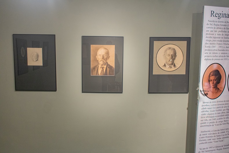 Estavam presentes à abertura duas familiares da artista, a sobrinha Norma Merten e a sobrinha-neta Berta Helena Moehlecke, que enfatizaram que Regina Simonis foi a primeira santa-cruzense a se formar no Instituto de Belas Artes do Rio Grande do Sul, sendo orientada pelo mestre europeu Francisco Pelichek.
