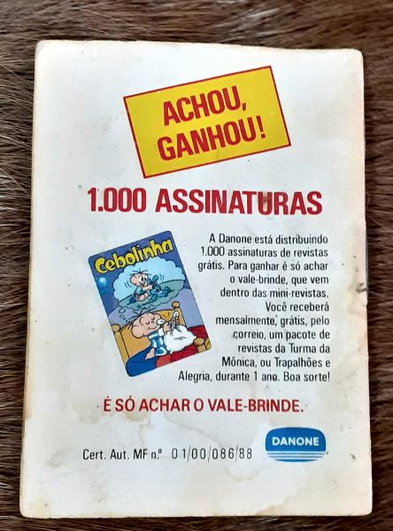 Na década de 1980, a Danone deu um incentivo a mais para a garotada manter o hábito da leitura. Nos seus tabletes de iogurte vinham 11 diferente minigibis. Eram cinco da Turma da Mônica, cinco dos Trapalhões e um do palhaço Alegria. E você ainda podia ser um sortudo e achar um vale-brinde, que dava direito a receber mensalmente uma revista da Turma da Mônica ou dos Trapalhões por um ano. Ao todo, foram distribuídas mil assinaturas.
