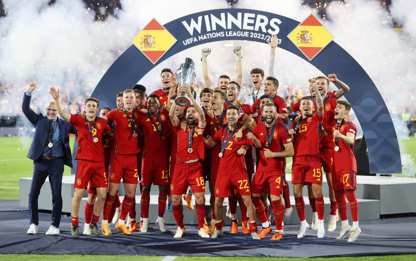 A Espanha é campeã da Uefa Nations League. Após um empate sem gols no tempo normal e na prorrogação, a equipe espanhola chegou ao título nos pênaltis (5 a 4), igualando-se a Portugal e França, os primeiros vencedores do torneio. O duelo de domingo, 18, foi realizado no Feyenoord Stadium, em Rotterdam, na Holanda.