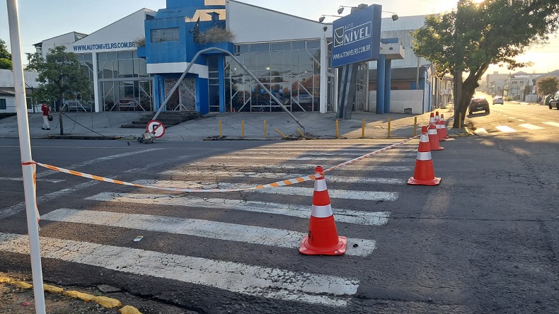 Motoristas que trafegam pelas ruas São José e Júlio de Castilhos, no Bairro Goiás, em Santa Cruz do Sul, devem redobrar a atenção nesta quarta-feira, 26. Isso porque, na noite dessa terça-feira, 25, um poste de semáforo caiu na esquina após a colisão de um veículo. Em razão do ocorrido, a Secretaria de Serviços Públicos está instalando um semáforo provisório no local, até que o equipamento definitivo seja colocado.