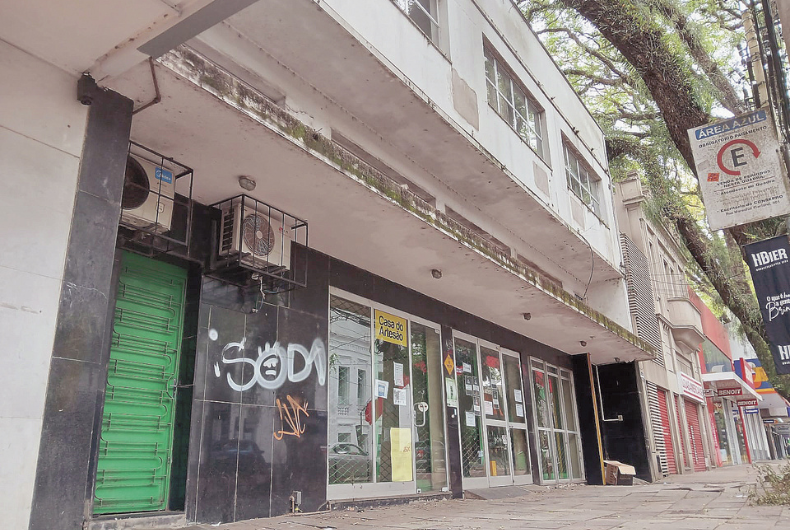 O imponente prédio que no passado foi sede da Caixa Econômica Estadual na Rua Marechal Floriano, entre a Fernando Abott e Ramiro Barcelos, em uma das áreas mais nobres do centro de Santa Cruz do Sul, sofre com a ação do tempo. Até maio deste ano, o local abrigava a agência da Fundação Gaúcha de Trabalho e Assistência Social (FGTAS/Sine). No entanto, em razão de danos causados pela chuva em excesso, a edificação precisou ser desocupada.