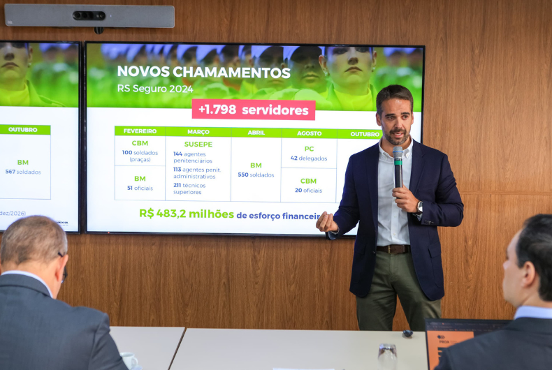 O governador Eduardo Leite anunciou, nessa quarta-feira, 28, à tarde, o chamamento de 1.798 novos servidores para a Segurança Pública do Rio Grande do Sul, com investimento estimado em R$ 483,2 milhões até o fim de 2026. Serão incorporados servidores na Brigada Militar (BM), na Polícia Civil (PC), na Superintendência dos Serviços Penitenciários (Susepe) e no Corpo de Bombeiros Militar (CBMRS).