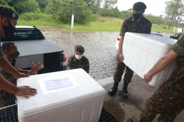 Medicamentos ficaram armazenados em câmara fria no 3º Batalhão de Suprimento, em Nova Santa Rita, na Grande Porto Alegre | Foto: Itamar Aguiar/Palácio Piratini