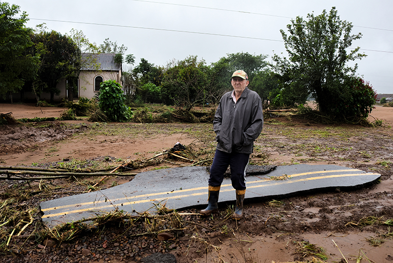“Meu filho veio nos buscar e conseguimos nos abrigar na região de Linha Alta, onde a água não chegou”, ressaltou. Nessa sexta-feira, vendo a casa tomada pela lama e os móveis estragados, ela se emocionou. “A gente chora com essa situação, pois perdemos tudo. Não temos água limpa para lavar e nem energia elétrica.” Délcia também presenciou as cheias de 1959 e de 2010. “Temos que seguir em frente como a gente sempre fez.”