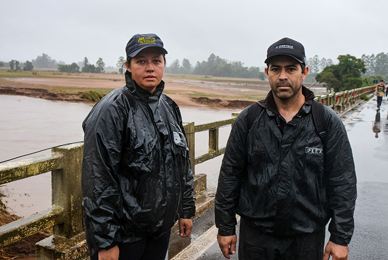 Tatiele foi acompanhada do esposo Dirlei Nery, 36. Eles estão morando em Novo Cabrais. “Essa ponte é algo improvisado e também perigoso, mas é o único meio de ajudar e levar comida e água para ela. Nesse momento, a família fala mais alto”, disse Tatiele, em meio às lágrimas.