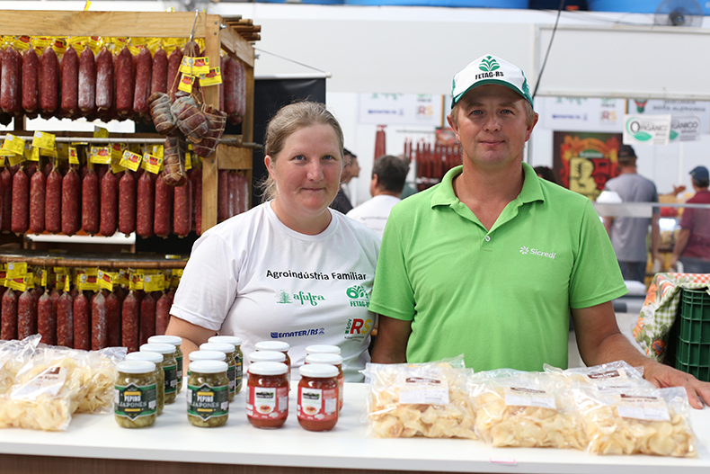 Oriundos de 134 municípios gaúchos, os comerciantes estão otimistas quanto aos resultados, assim como a Federação dos Trabalhadores na Agricultura no Rio Grande do Sul (Fetag). Estreante, o casal Cristian e Cláudia Hirsch começou no ramo da agroindústria no fim do ano passado, em Sinimbu, e escolheu a Expoagro como primeiro evento para expor a produção. Eles disponibilizaram chips de mandioca, molho de tomate e conserva de pepino japonês. “A infraestrutura do pavilhão é ótima, tudo o que precisamos está aqui. Na terça-feira foi devagar, mas depois o movimento foi melhorando”, afirma Cristian.