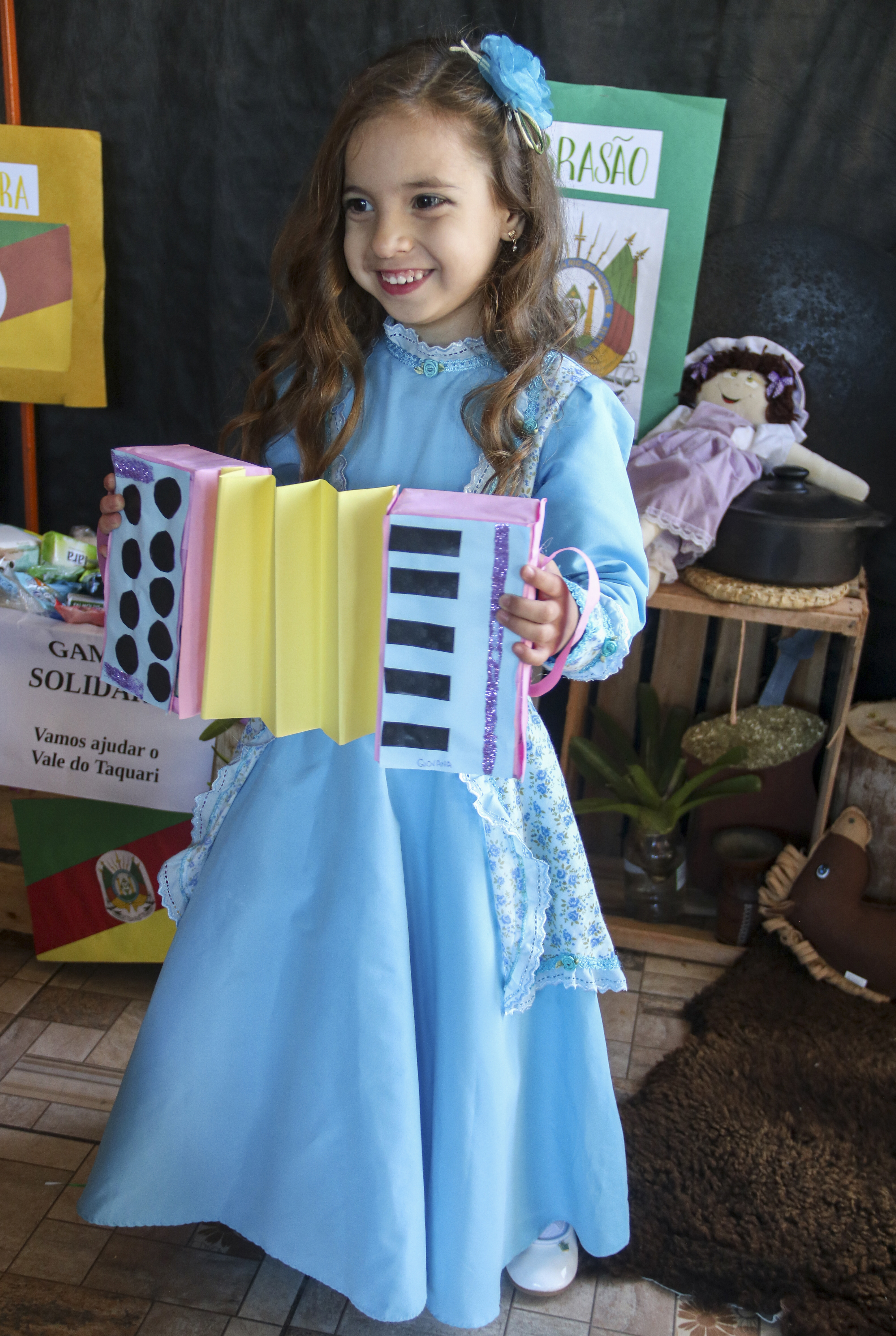 “Eu vou dançar, fandango de galpão. Coisa melhor que tem pra alegrar o coração…”. Foi só o gaiteiro Lucas Teixeira começar a cantoria para que os olhinhos brilhassem ainda mais. Pilchados, com vestidos de prenda e bombachas, os pequenos estudantes da Escola Municipal de Educação Infantil Raio de Luz, de Vera Cruz, foram convidados a participar de um gaitaço na manhã dessa sexta-feira, 15.