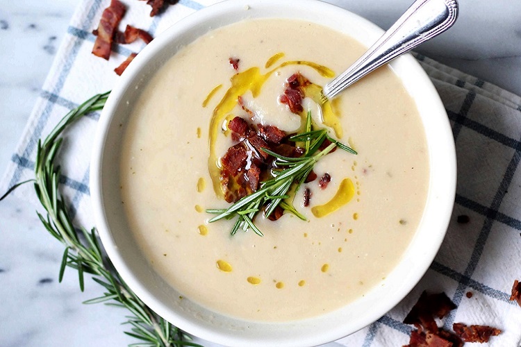 Preparo: Em uma panela aqueça o azeite e adicione as cebolas e o alho e refogue. Junte o feijão, o caldo de galinha, o alecrim, o sal e a pimenta. Deixe ferver e cozinhe por cerca de 30 minutos. Use um processador para bater o caldo ou coloque tudo no liquidificador para fazer o creme até ficar homogêneo. Corrija o tempero e sirva, podendo cobrir com bacon crocante preparado na frigideira.