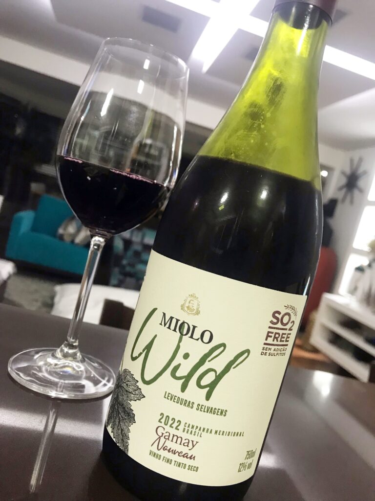 O primeiro vinho da safra 2022 do mundo, um brazuca, provei lá no final de março, o Miolo Wild Gamay Noveau 2022. Ser o primeiro rótulo desta safra tão aguardada e que ainda está finalizando a vindima das castas mais tardias não denota apenas ineditismo, mas sim um conceito: este Gamay é vegano, utiliza o método ancestral de maceração carbônica, não leva adição de sulfitos (SO2 Free) e é elaborado com leveduras selvagens vindas da própria uva.