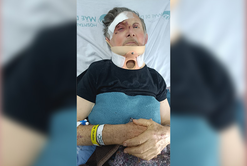 “Adoro meus cachorrinhos e agora estão lá, sem ninguém para cuidar. Estamos batalhando junto ao Município para me levarem para continuar o atendimento no Hospital Santa Cruz. No momento sinto muita dor e estou um pouco fraco, pois não venho conseguindo comer muito dessa alimentação hospitalar.” Ele disse que precisará ficar por cerca de dois meses com um colete cervical, após fraturar vértebras na região da nuca. Seu rosto também está machucado.
