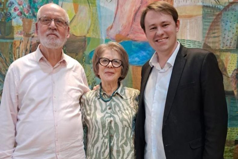 Professora Lissi Bender entre Eckhard Kupfer (esq.) e Felipe Kuhn Braun, em Juiz de Fora