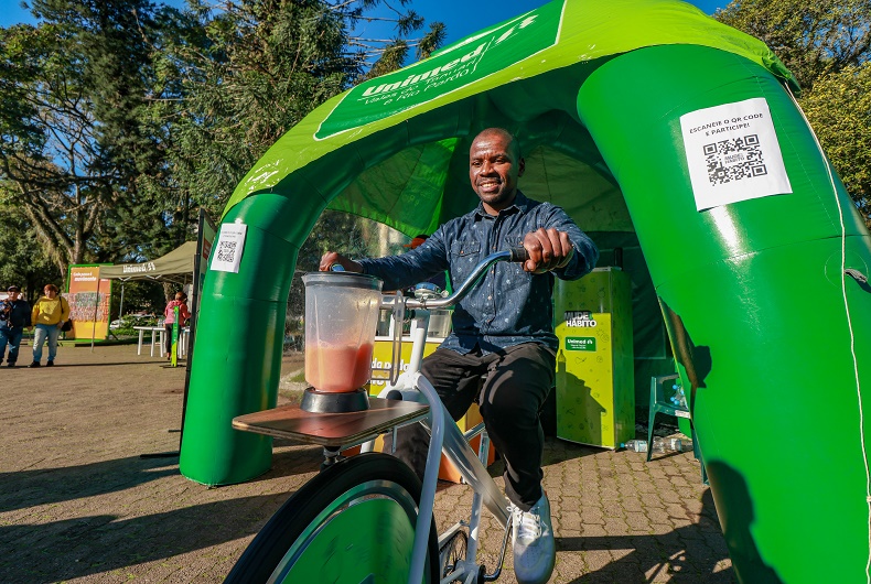 Angelo Ramos Silveira, de 33 anos, veio com a família de Rio Pardo para participar do evento e aproveitou para realizar a tarefa inusitada. “Nunca tinha feito nada assim. Achei muito legal pedalar, estimular a saúde e ainda ganhar um suquinho”, comentou.