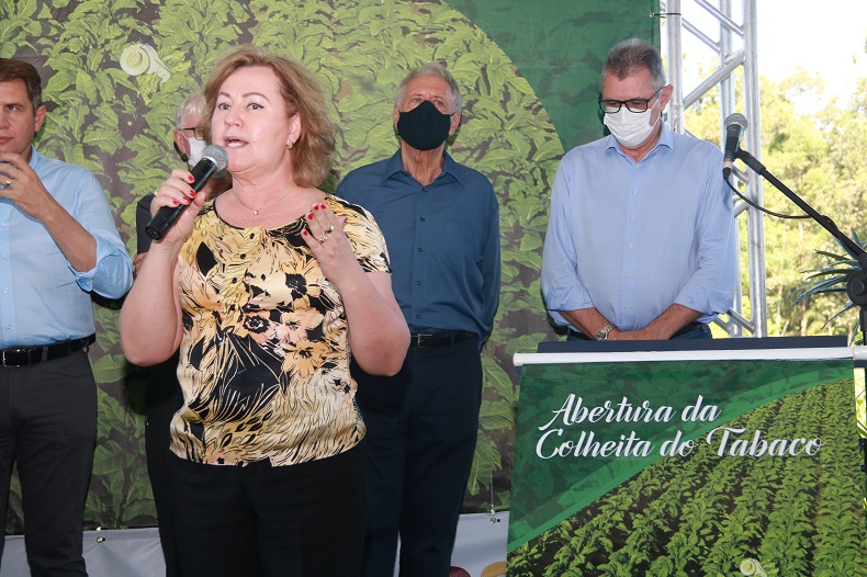 A deputada reforça que já foi atacada pelo seu posicionamento. “Quem defende o setor, na Assembleia Legislativa ou na Câmara, é atacado. Nós defendemos as famílias como vocês, que são corajosos, defendemos um produto que é legal, que gera empregos e impostos e fomenta a economia”, enfatiza a ex-prefeita de Santa Cruz do Sul, que falou em nome de seus colegas Beto Fantinel, Adolfo Brito e Ernani Polo, que foi o criador do evento Abertura da Colheita do Tabaco quando estava à frente da Secretaria Estadual da Agricultura.